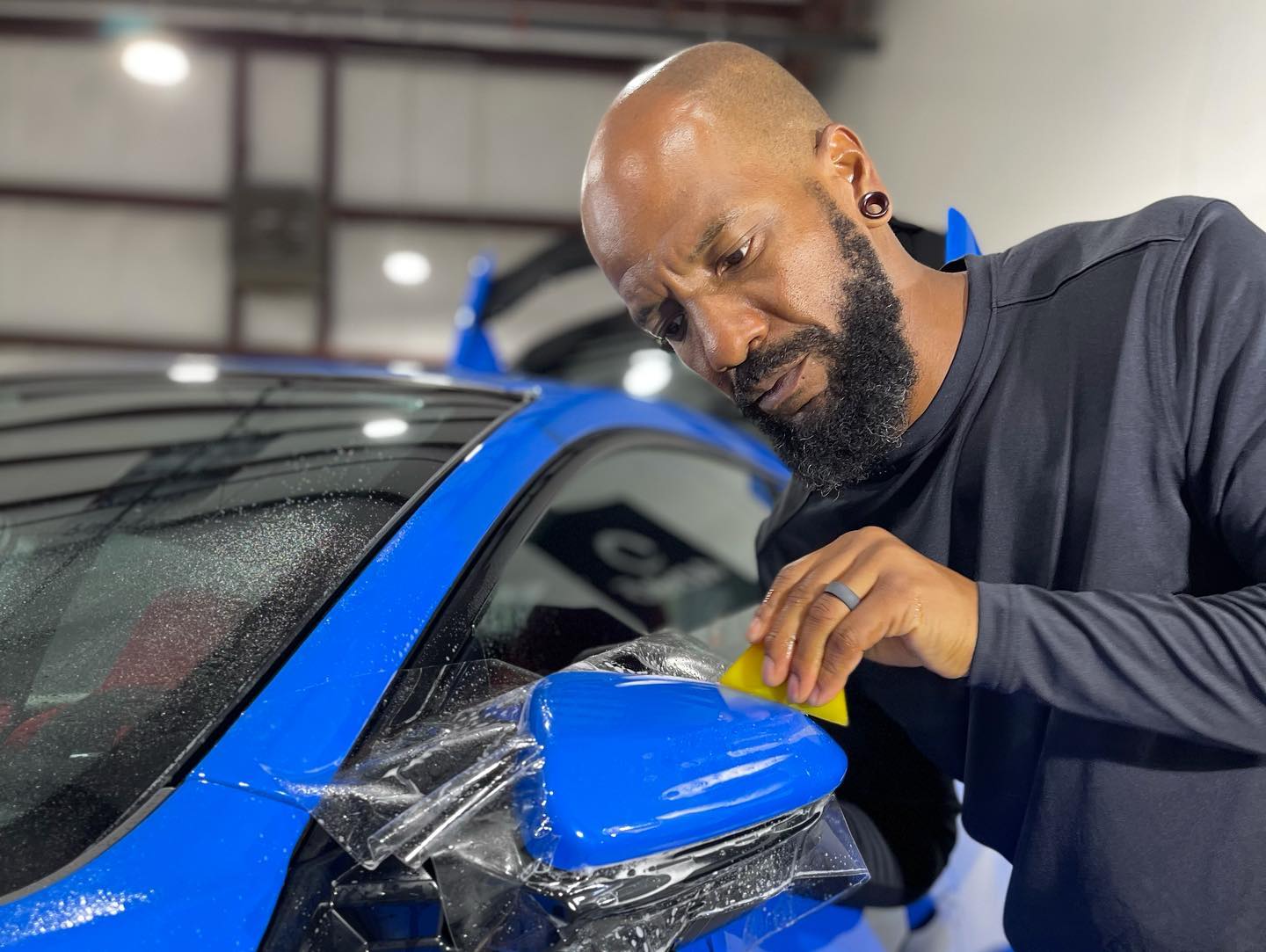 Many hands make light work on this Blue Honda Civic Type R Paint Protection Film Job.