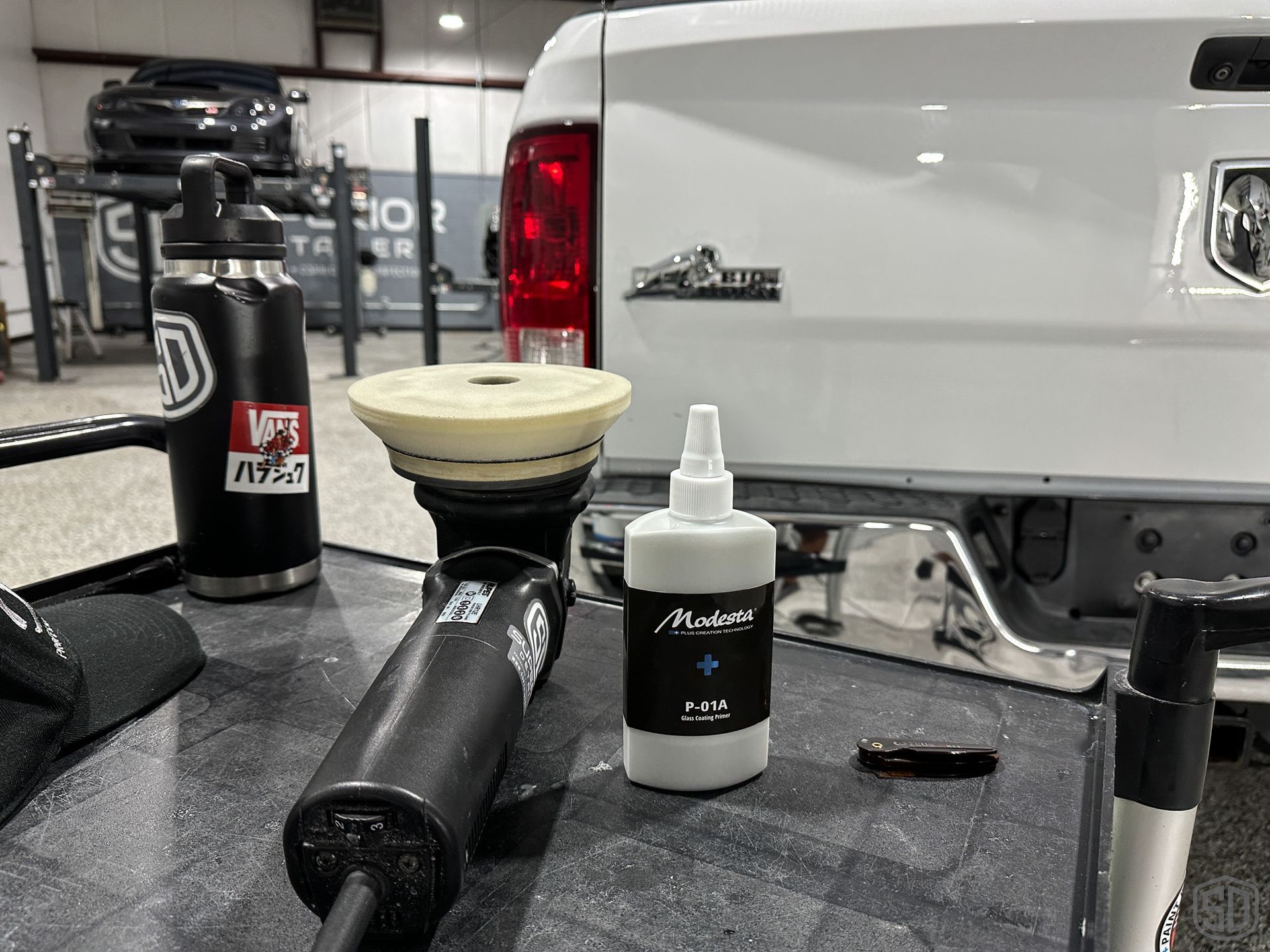 2015 RAM 1500 BIGHORN -THOROUGH RESTORATIVE DETAIL W/ LEVEL 3 PAINT CORRECTION & INTERIOR DETAIL, CHROME AND GLASS POLISH, SUNTEK WINDOW TINT, & MODESTA COATINGS