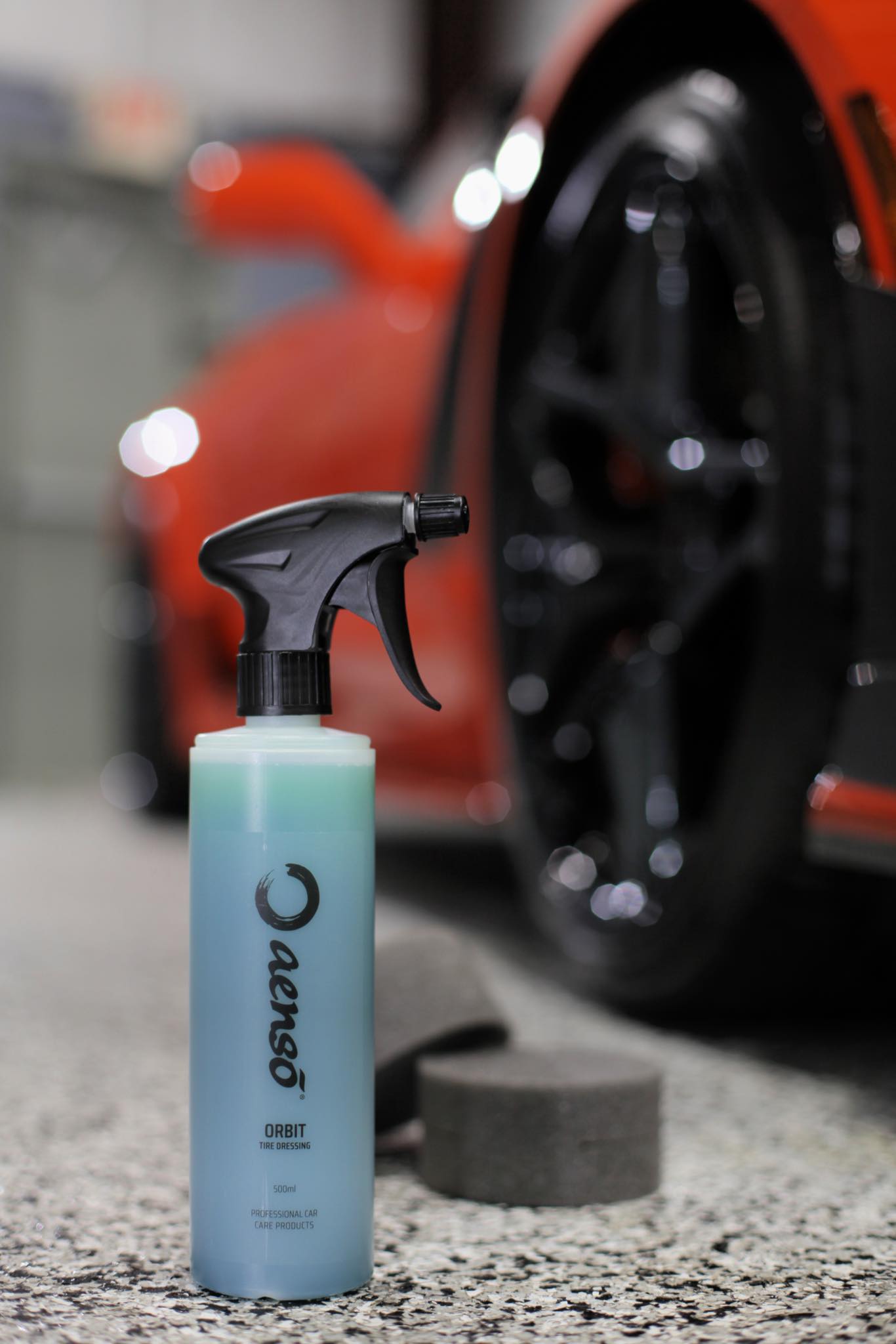 Orbit is a tire dressing that give a satin, natural finish! One of our favorite aspects is that its non-greasy formula absorbs into the surface quickly which eliminates product fly-off while driving after application, keeping the vehicle nice and clean...which is something we take very seriously here.