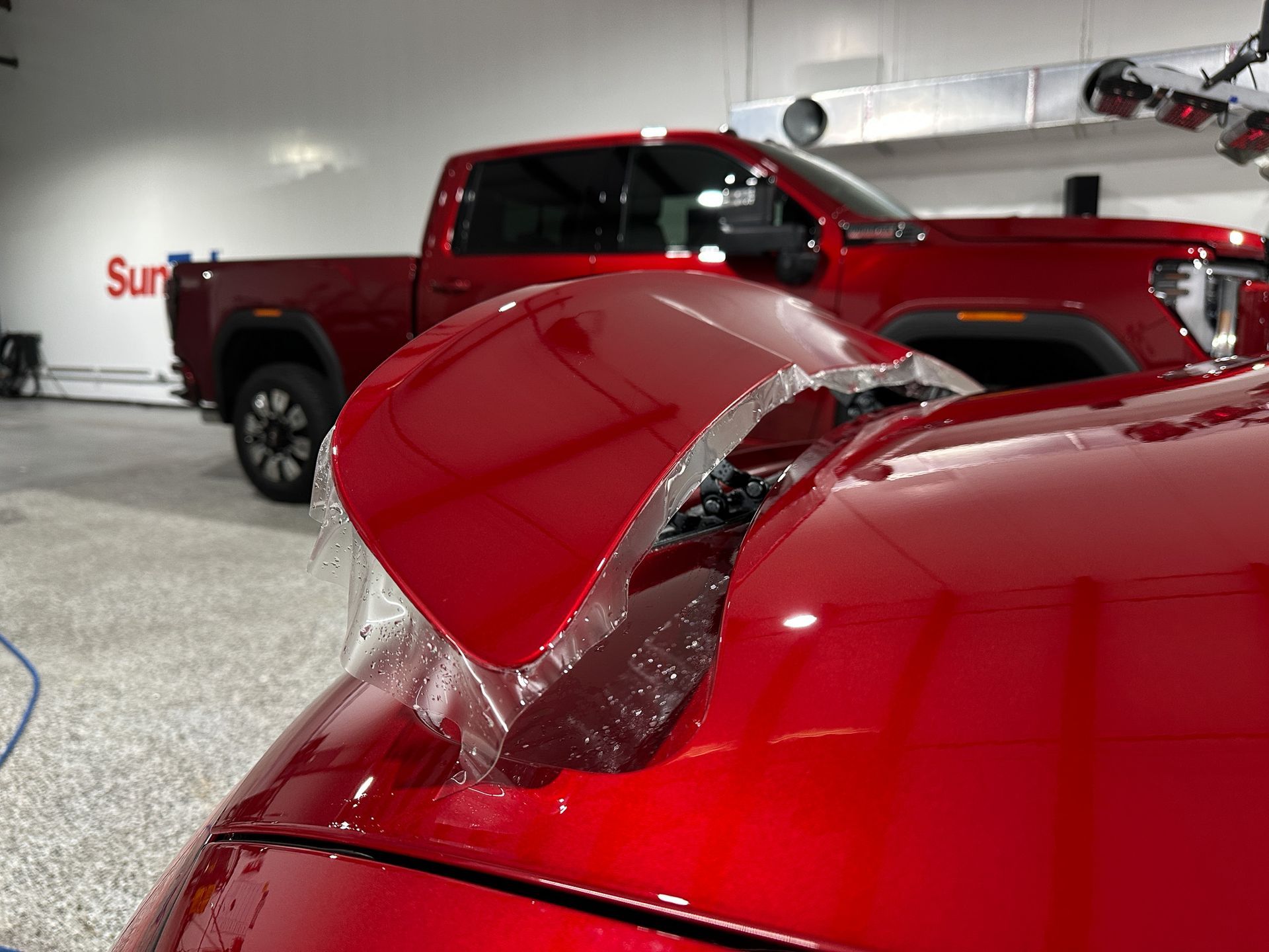 Transport damage, dealership handling, and improper washing often introduce things like swirl marks, light scratches, and surface contamination. Even though these things may seem minor, they can negatively affect the exterior finish later on. We would start off with a proper inspection, prep wash, and paint correction to ensure the finish is flawless before any protection is applied.